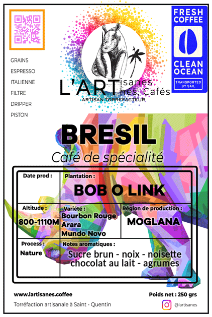 « Issu du projet Bob-O-Link, ce café naturel provient du cœur de la région de Mogiana, dans l’État de São Paulo, au Brésil. Conduit par la famille Croce à travers la Fazenda Ambiental Fortaleza (FAF), ce projet va bien au-delà de la production de café : il promeut une agriculture durable, familiale et respectueuse de l’environnement, dans un pays où l’agriculture intensive et la monoculture sont encore courantes.