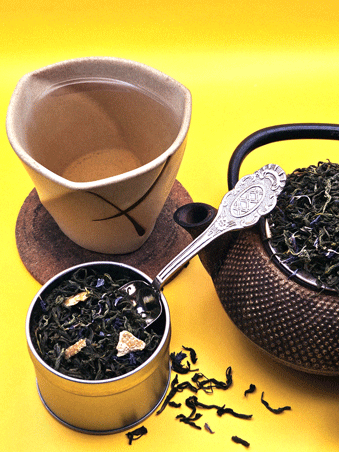 Thé vert Wu lu de Chine*, écorces de bergamote de Calabre* et pétales de bleuet*.