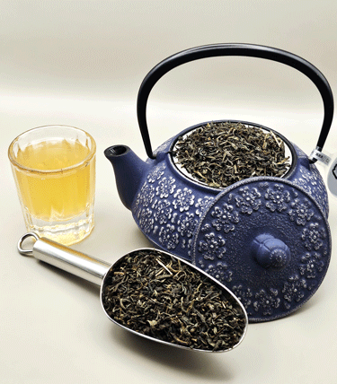 Le thé vert est soumis à un bain de vapeur de 15 à 45 secondes pour arrêter l’oxydation. Puis les feuilles sont roulées et séchées. De plus, le thé vert bénéficie des vertus antioxydants les plus fortes parmi les thés. Attention à ne pas malmener les feuilles qui sont très fragiles, une fois brisées les saveurs ne seront plus les mêmes.