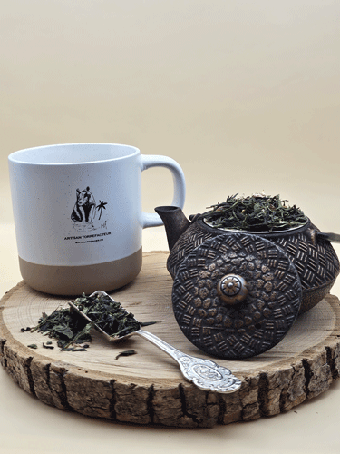 Le thé vert est soumis à un bain de vapeur de 15 à 45 secondes pour arrêter l’oxydation. Puis les feuilles sont roulées et séchées. De plus, le thé vert bénéficie des vertus antioxydants les plus fortes parmi les thés. Attention à ne pas malmener les feuilles qui sont très fragiles, une fois brisées les saveurs ne seront plus les mêmes.